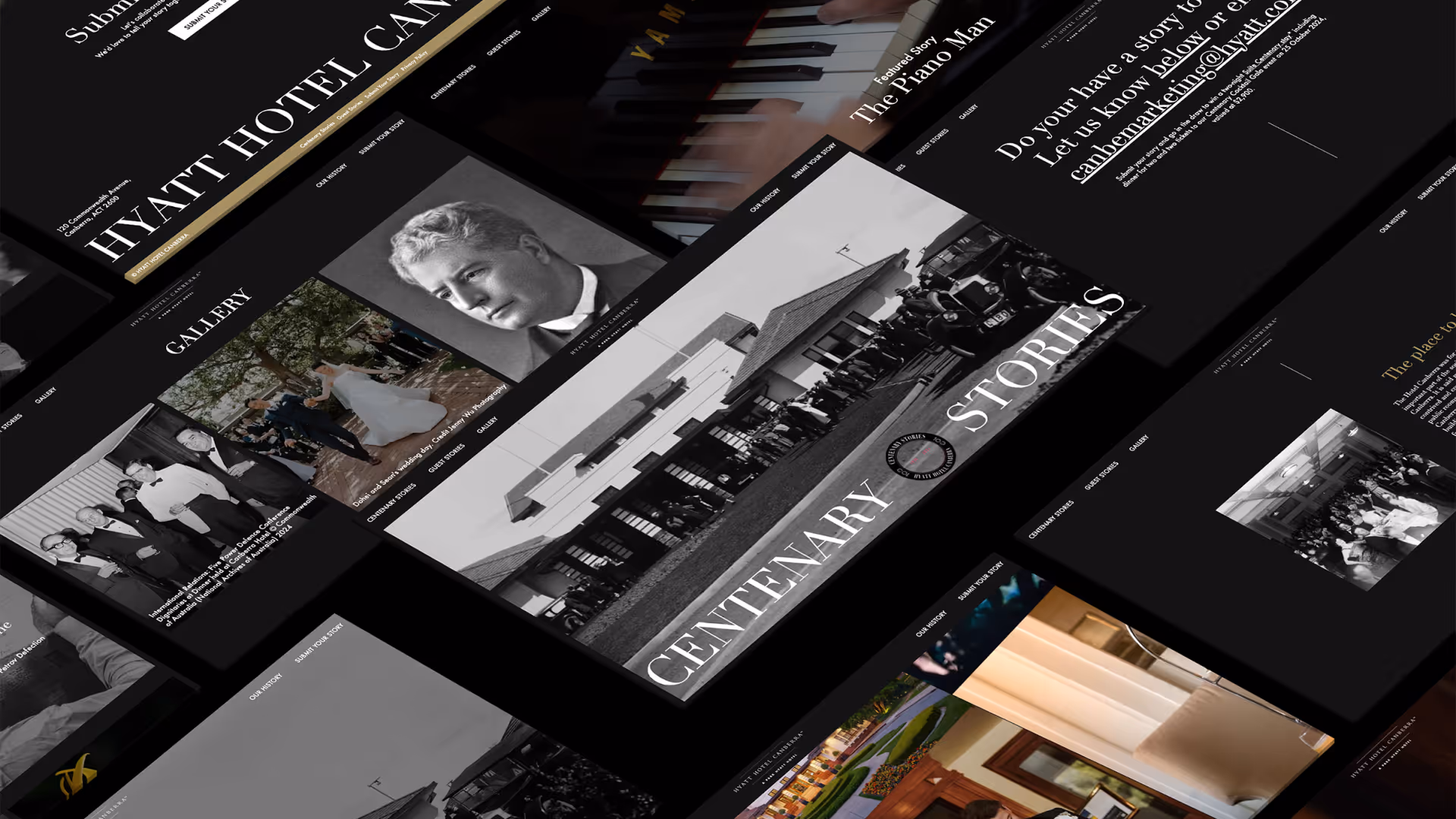 A centenary offers far more than a celebration. It presents a rare opportunity to capture, curate and share the stories that define the hotel’s legacy and engage past and future visitors through stories of people, moments and cultural significance built up over a century. The challenge was to create a platform that respected the weight of that history without feeling nostalgic or dated. The website needed to feel elegant, timeless and editorial in nature, while remaining accessible and engaging for previous guests, stakeholders and new audiences discovering the hotel for the first time. Above all, the experience needed to reflect Hyatt Hotel Canberra’s standing as a heritage institution, balancing reverence for the past with subtle cues of modernity.